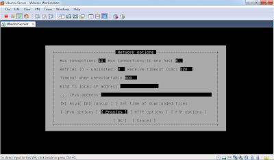 - Jika jaringan yang sedang anda gunakan adalah jaringan proxy, anda bisa mensetting konfigurasi proxy dengan tekan Esc, lalu masuk menu Setup, kemudian pilih Network options